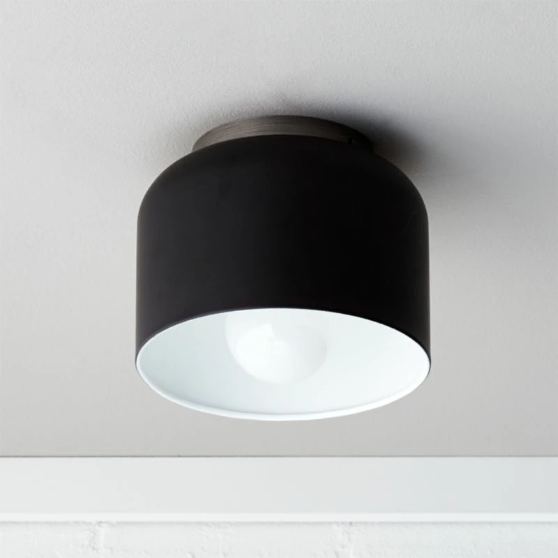- Steel shade: painted black exterior; painted white interior