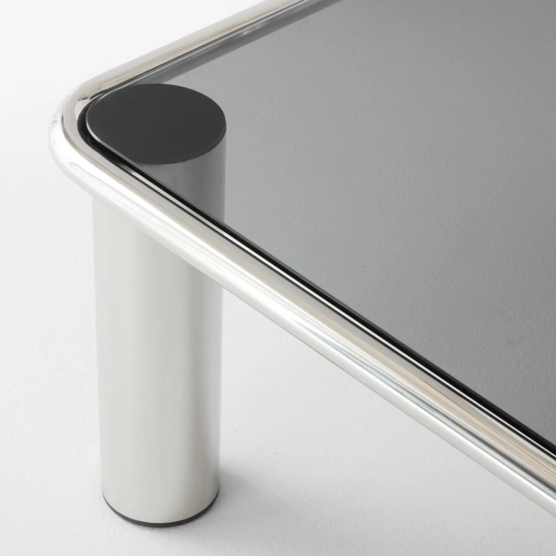 Created by groundbreaking Italian designer Gianfranco Frattini, this rectangular coffee table exemplifies the decade-defining aesthetic he introduced in the 1970s. Designed at the same time as his famous Sesann sofa, this polished stainless steel coffee table features a grey smoked glass top that plays up the sheen of its tubular legs. Newly reintroduced in collaboration with CB2, the top and bottom are made in Italy—just like the original. CB2 exclusive.