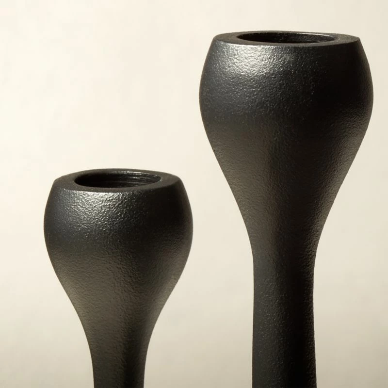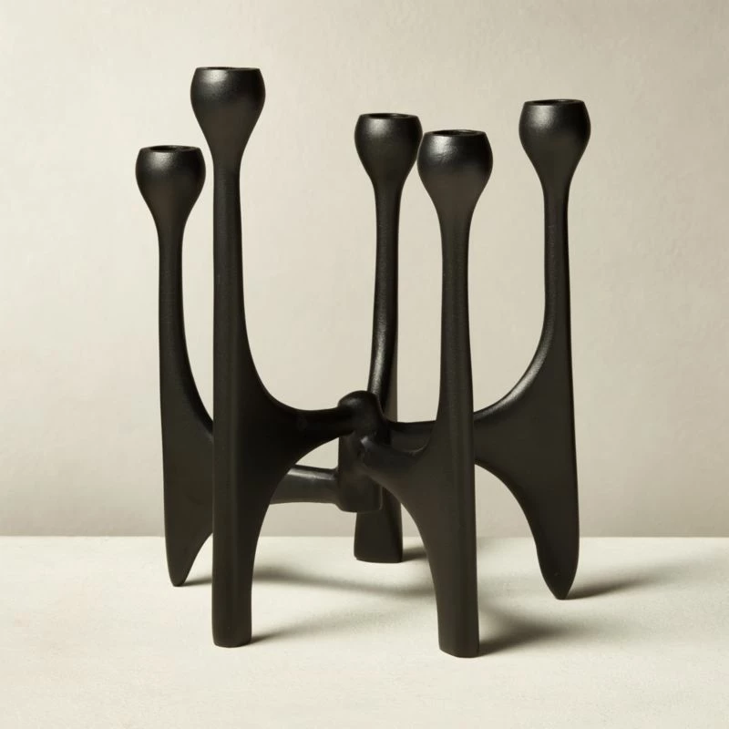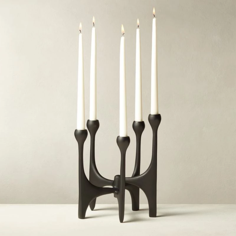 Matte black multi taper candle holder takes the term “sculptural” to new heights. Unique shape supports five taper candles for a glow with artistic edge. CB2 exclusive.