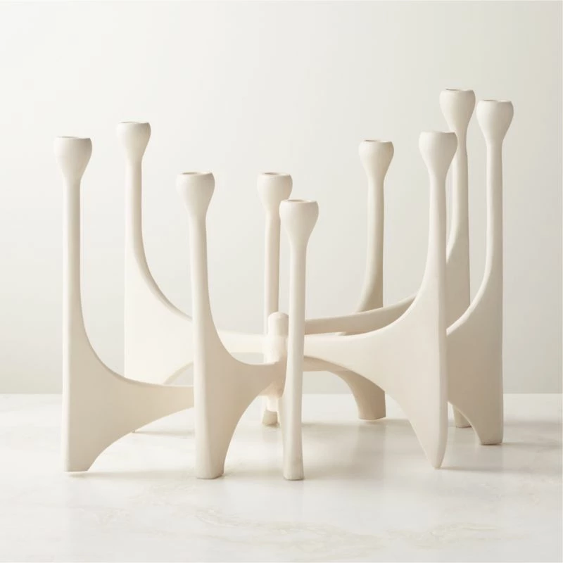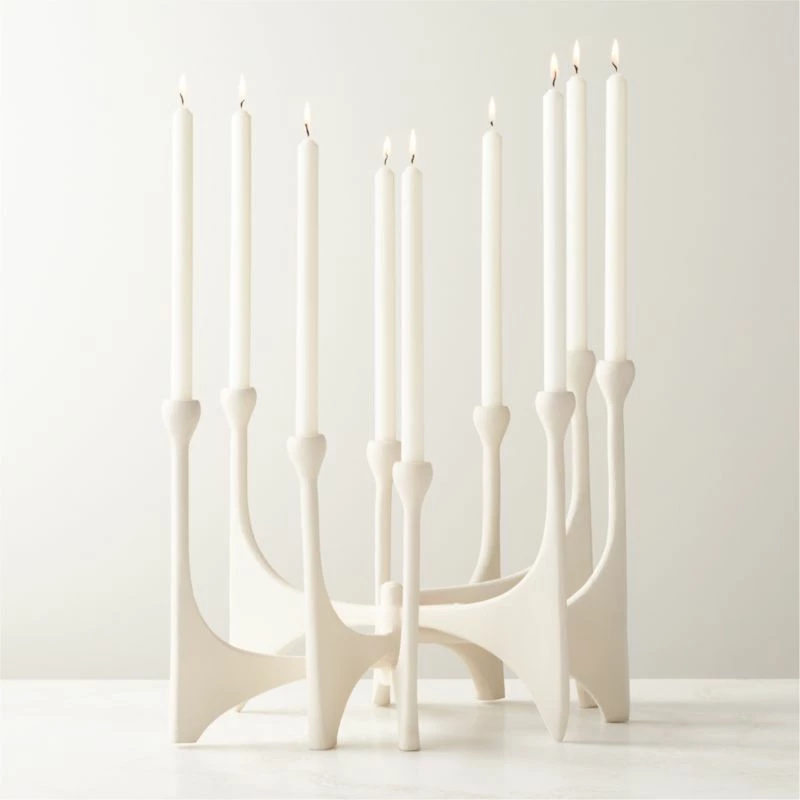 Matte white multi taper candle holder takes the term “sculptural” to new heights. Unique shape supports nine taper candles for a glow with artistic edge. CB2 exclusive.