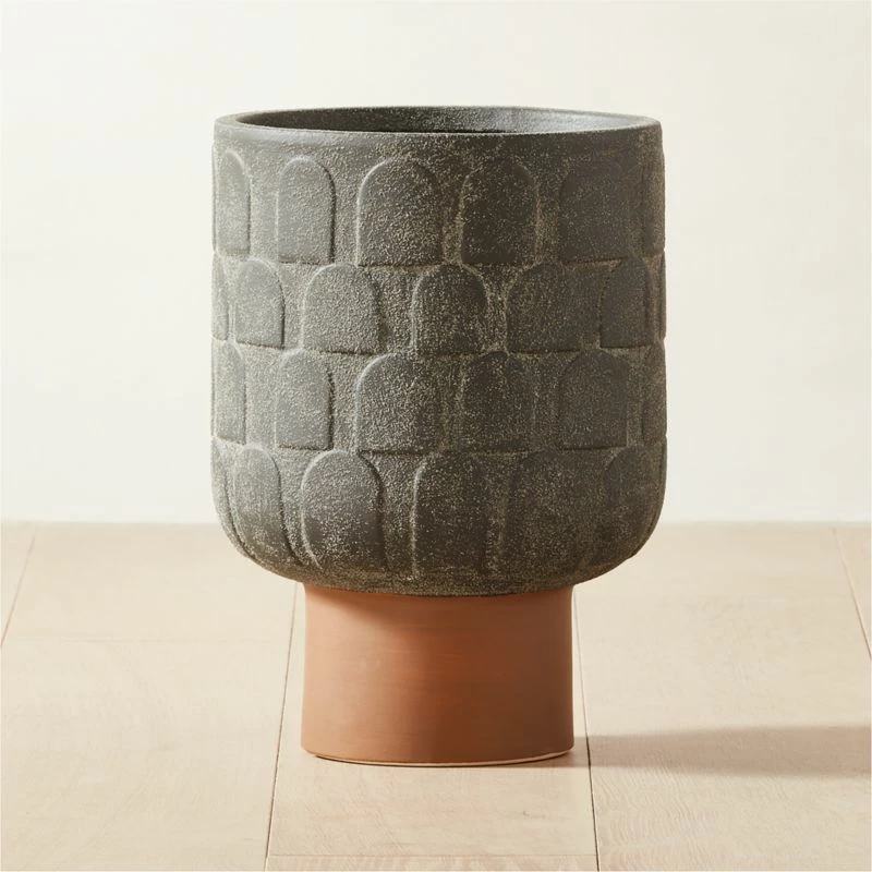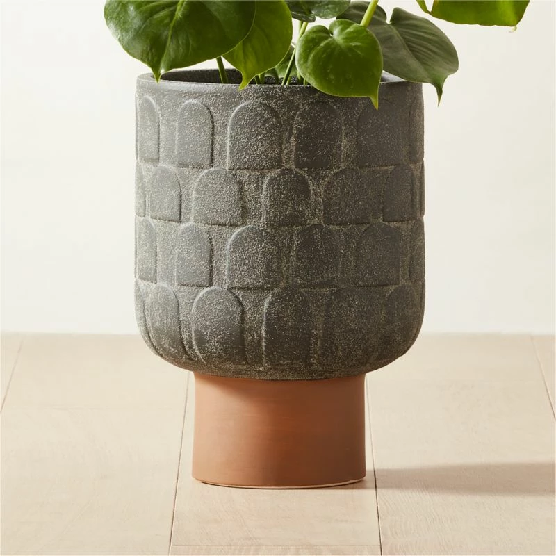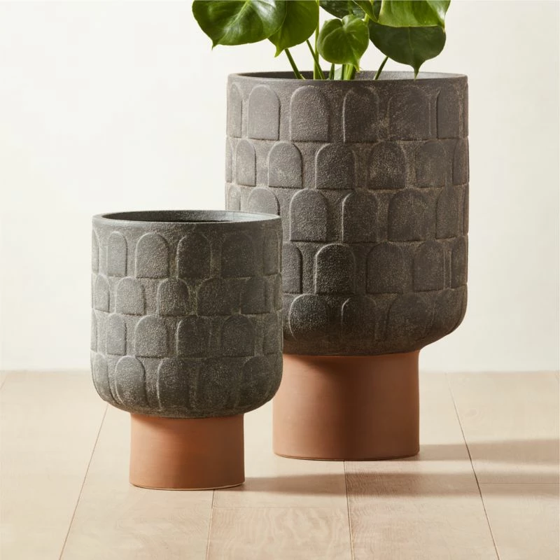 A planter with arches feels on trend yet timeless. Sandy black earthenware planter by California design studio Lawson-Fenning has a footed base of raw brown clay. When fired in the kiln, the glaze creates slight variation in texture and color, giving each piece a unique beauty. CB2 exclusive.