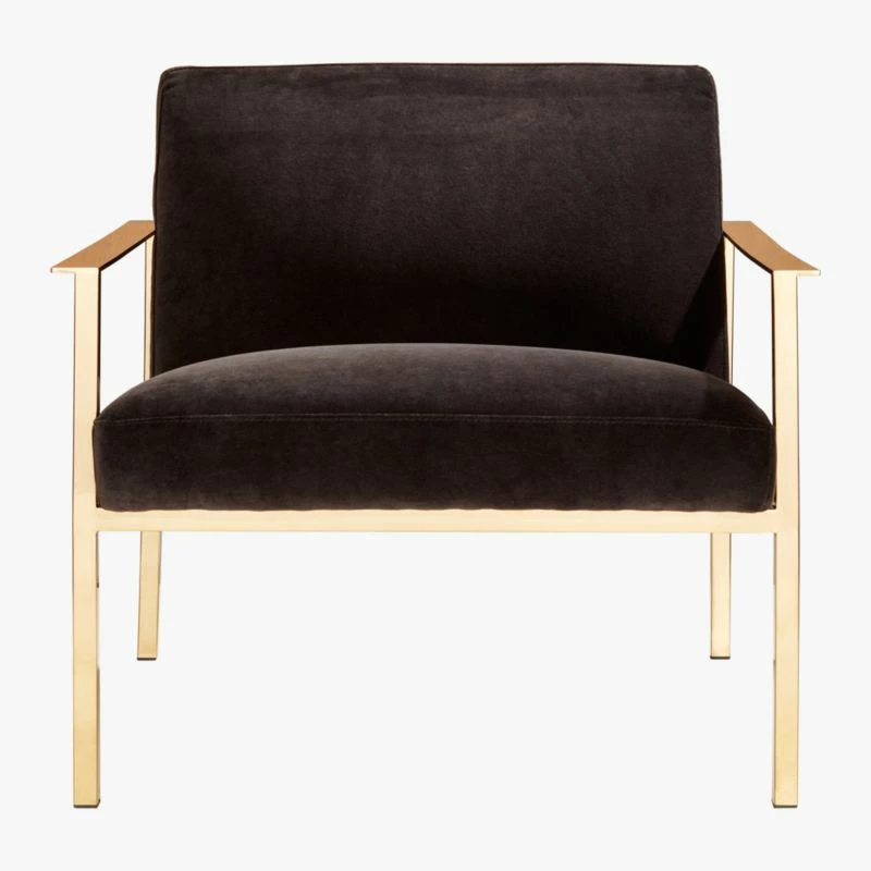 Designed by Mermelada Estudio, luxe lounger leans ultra modern in shiny brass and moody carbon. Sleek, square base sits low-ish to the ground with an extra-deep seat and wide back perfectly angled for comfort. Carbon velvety fabric manages to be sophisticated yet warm. All together the vibe is glamorous, elegant and very upscale. (We’ve seen similar designs elsewhere for twice the price.) Place in an eye-catching corner and prepare for compliments. Learn about Mermelada Estudio on our blog.
