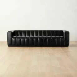 Forte 101″ Extra-Large Channeled Black Leather Sofa 102″Wx36.5″Dx26.5″H
