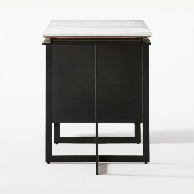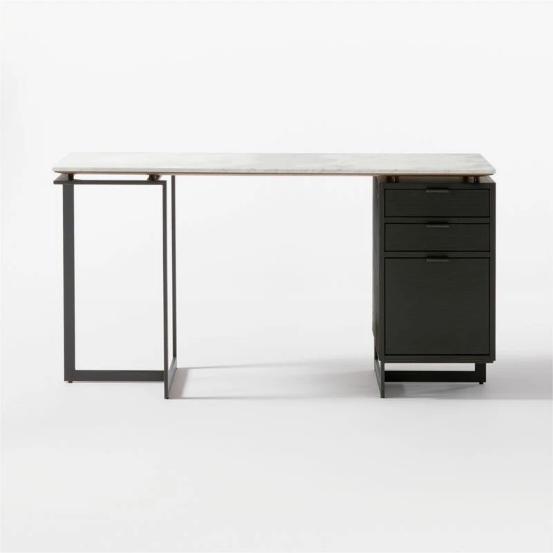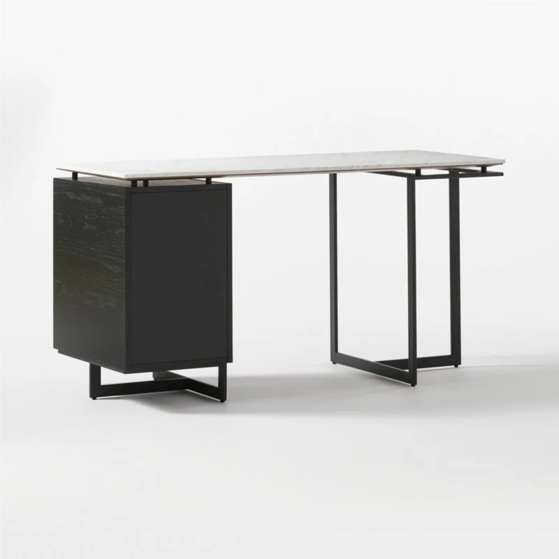 Black oak and metal desk works hard round the clock. Set of drawers makes space for desk accessories, with a bottom drawer designed for hanging files. Minimalist black metal frame creates an airy base for white marble top that always looks sleek. Learn about VUUE on our blog. CB2 exclusive.