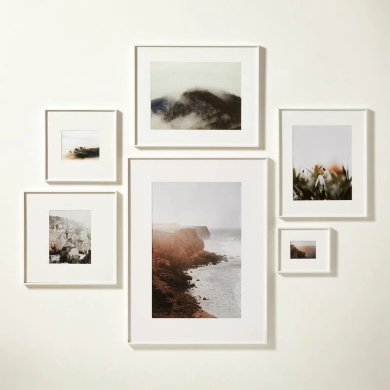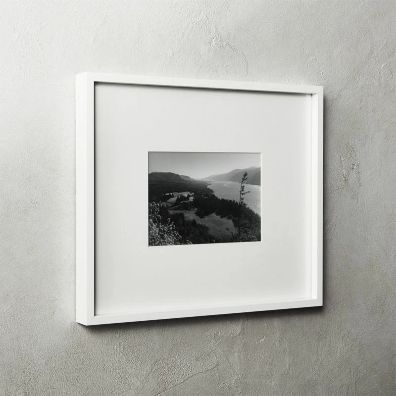 Exhibit your favorite photos and images gallery-style. White mat floats one 5×7 within a sleek picture frame of bright white aluminum. CB2 exclusive.