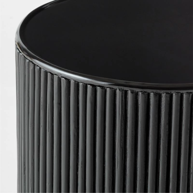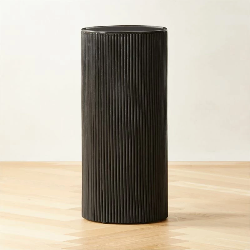 Black lacquered finish elevates Mermelada Estudio’s rattan pedestal table. Topped with a smooth, glossy black wood surface, its simplicity provides the perfect contrast ensuring sculptures, vases, plants and other objects of importance stand out. CB2 exclusive.
