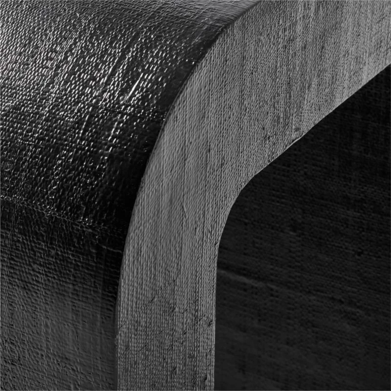 Inspired by 1970s modern silhouettes and unique materials, VUUE’s design turns a simple U-shaped form into a statement side table with extra-rich texture. Raffia wraps the piece, finished in hi-gloss black. Mixes effortlessly with any modern living situation. Learn more about VUUE on our blog. CB2 exclusive.
