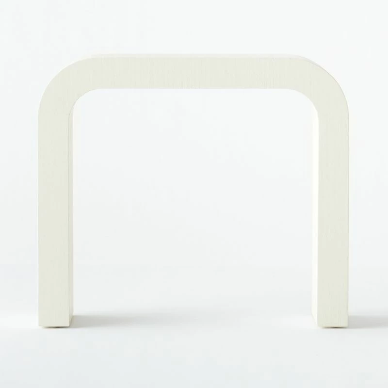 Inspired by modern silhouettes and unique materials of the 1970s, VUUE’s design transforms a simple U-shape into a statement console table with extra-rich texture. Raffia wraps the piece, finished in hi-gloss ivory. Mixes effortlessly with any modern living situation. Learn more about VUUE on our blog. CB2 exclusive.