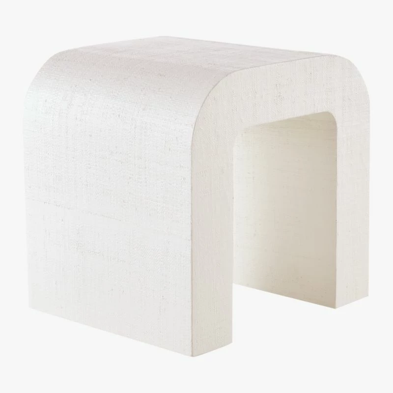 Horseshoe Ivory Lacquered Linen Side Table 19″Wx17″Dx19″H