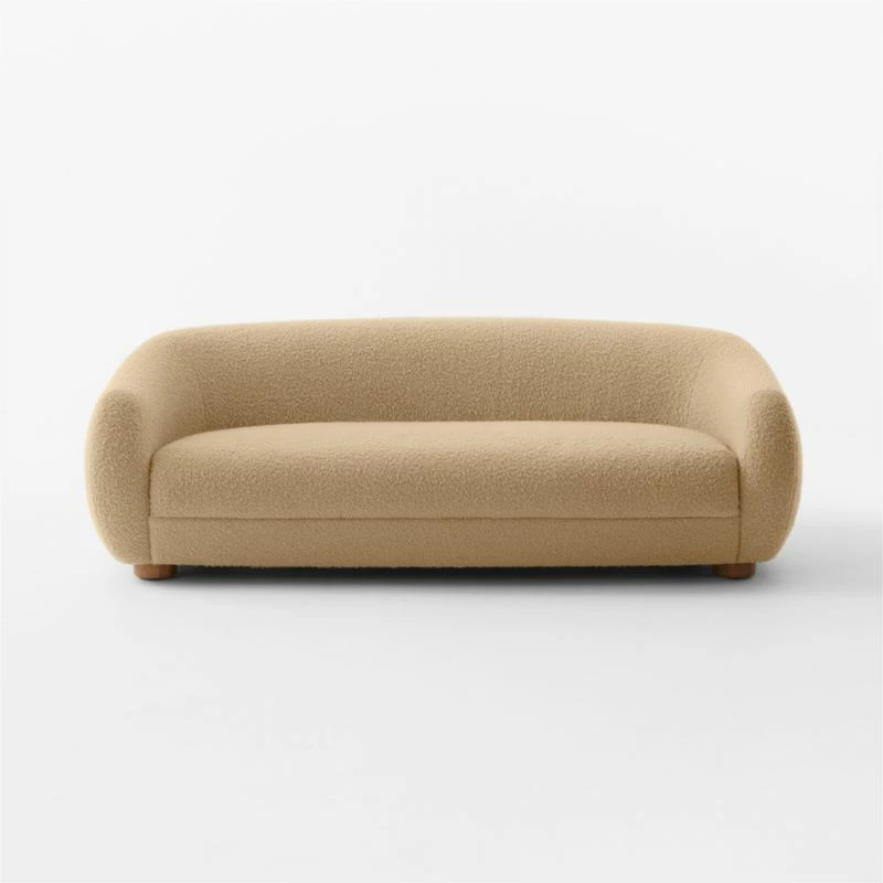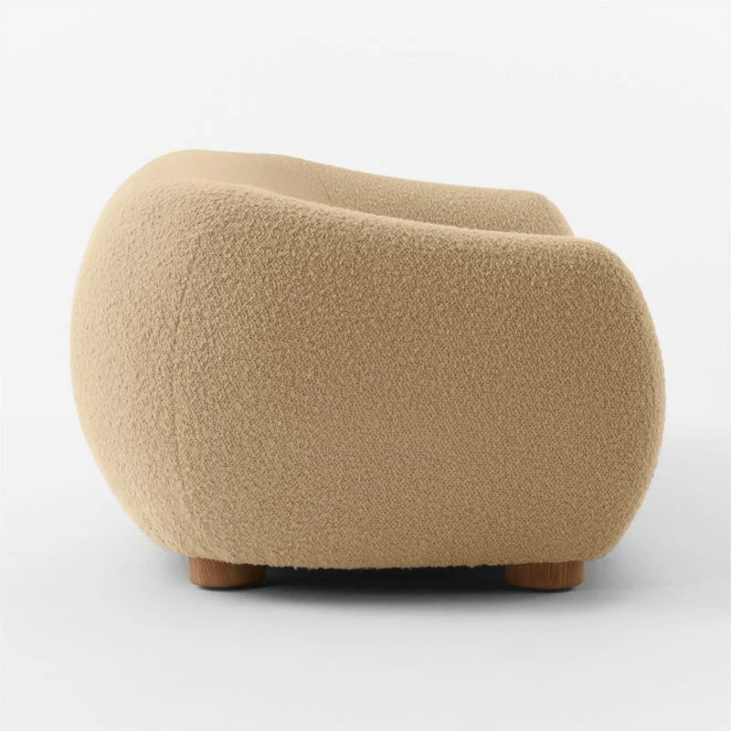 Boucle loveseat by Los Angeles-based designer Ross Cassidy strikes the perfect balance between modern style and cloud-like comfort. Floating atop natural oak legs, the curved back hugs a generously cushioned seat. Developed exclusively for CB2, the texture-rich custom boucle features a uniquely fluffy hand for an ultra-plush sit. It’s easily one of our most comfortable loveseats to date. CB2 exclusive.