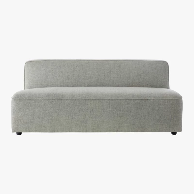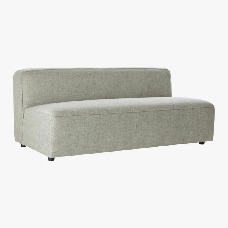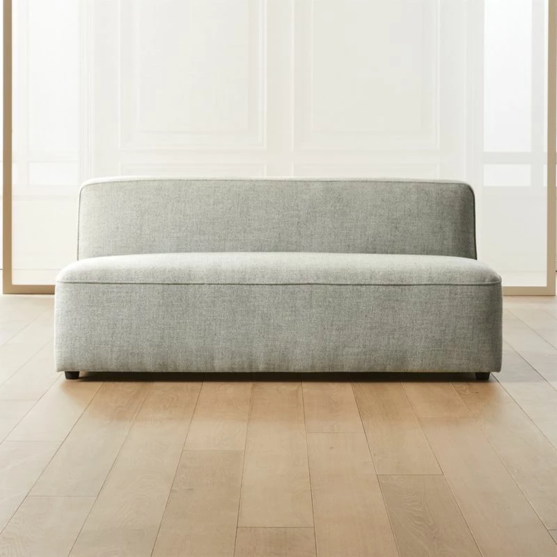 Designed by Mermelada Estudio, armless loveseat lounges ultra-low with overstuffed cushions that beckon for late-night hangs. Straightforward lines keep the focus on cool-factor/comfort. Chills on its own, or introduce additional sectional pieces to fit your changing needs. Learn more about Mermelada Estudio on our blog. CB2 exclusive.