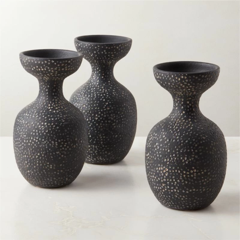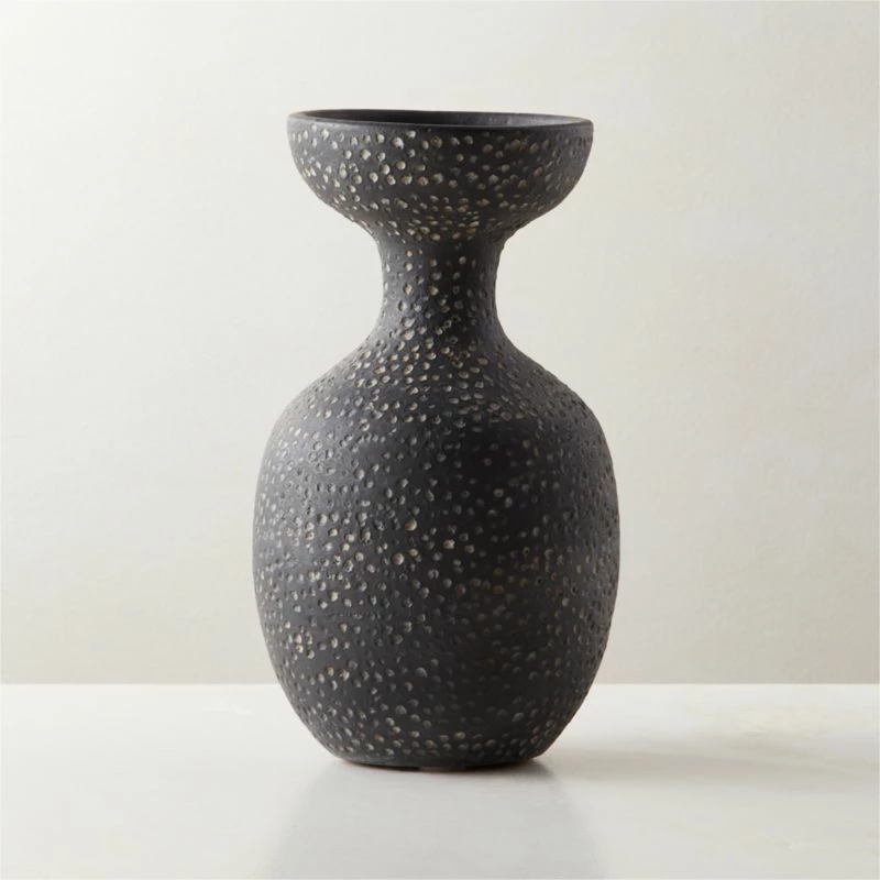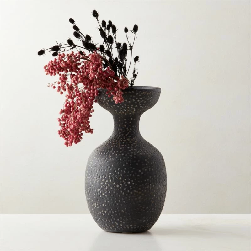 The perfect vessel for dried botanicals, this curvaceous tabletop vase is a symphony of tonal contrast and texture. Hand-formed by a skilled pottery thrower with at least five years of experience, each terracotta piece is painted and stamped to create the unique variations that make it one-of-a-kind. CB2 exclusive.