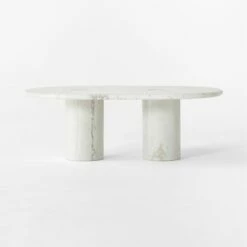 Liguria Oval White Marble Coffee Table With White Marble Base