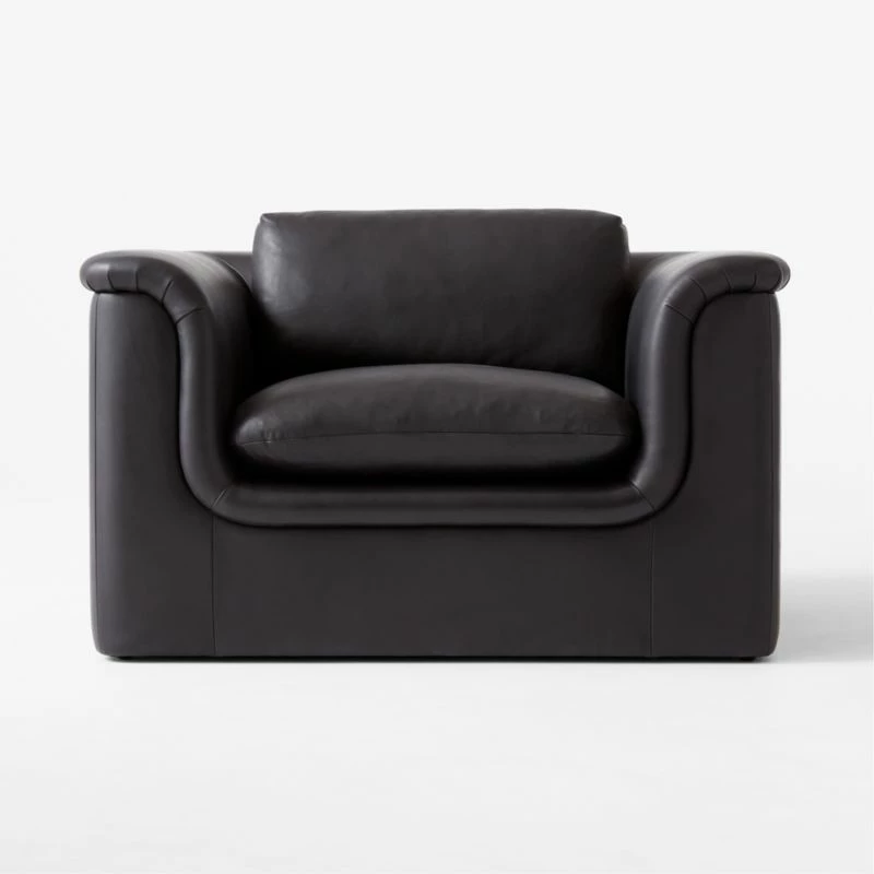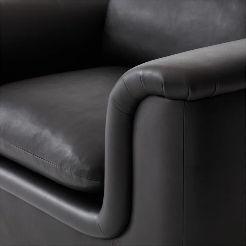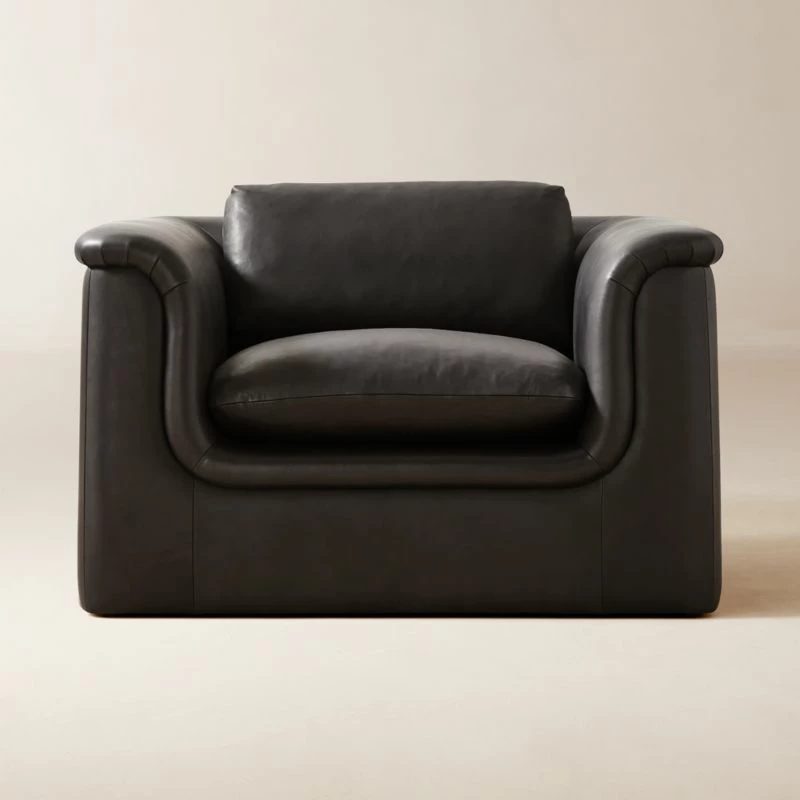 Low-slung lounge chair by Melbourne-based VUUE invites you to curl up into indulgent Italian leather. Delicately pleated arms nod to tradition, while the chair’s sculpted curves and sumptuous leather upholstery take on a more modern aesthetic. Tanned in Italy, Moore & Giles top-grain leather surfaces natural markings, scars and tonal variations for a lived-in look full of rich character. CB2 exclusive.