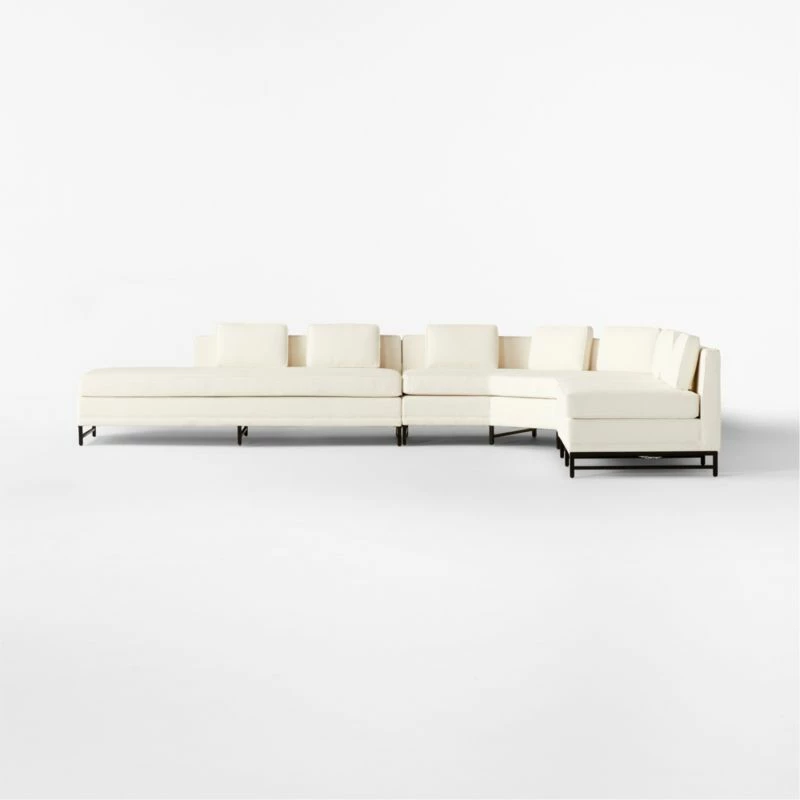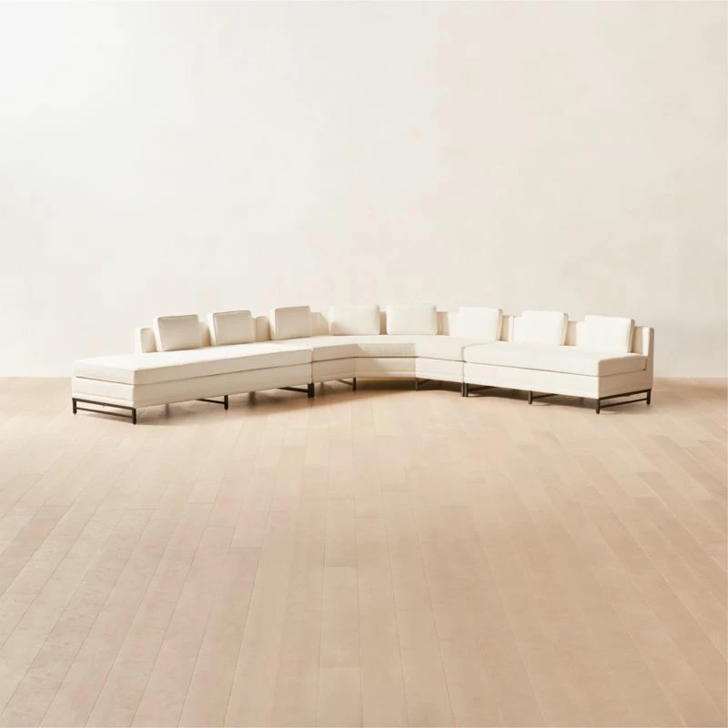 Like all Paul McCobb designs, this sectional sofa is quintessentially midcentury with its clean lines, simple silhouette and attention to detail and craftsmanship. Sectional features luxe cotton-blend upholstery in an ivory micro-bouclé, black satin metal legs and an FSC ®-certified frame. The design’s large scale makes quite the statement when arranged as a full sectional, and individual pieces are versatile enough to work well on their own. CB2 exclusive.