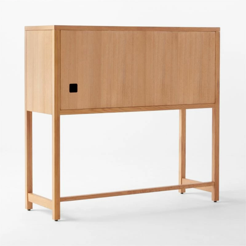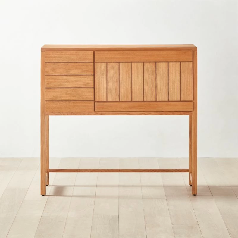 Designed by California studio Lawson-Fenning, FSC ®-certified oak secretary desk has thoughtful proportions and clean lines. Flip-down door reveals writing surface, letter tray and storage for essentials; a separate cabinet stores notebooks and other workday necessities. CB2 exclusive.