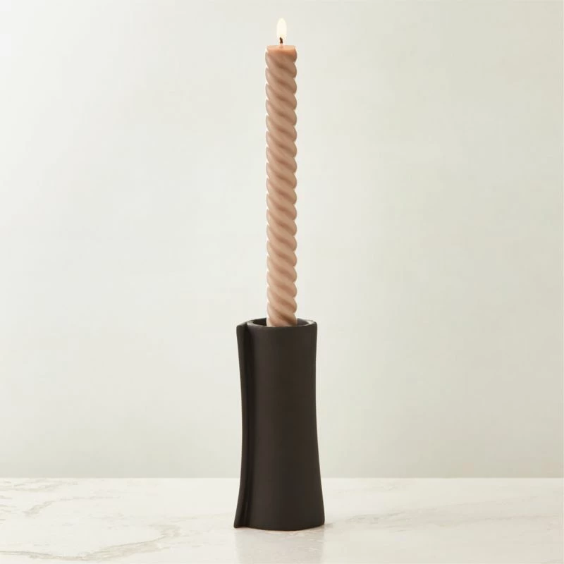 Designed by Nicholas Obeid, clay candle holder appears to wrap itself around a taper candle to create a sculptural look and feel. CB2 exclusive.