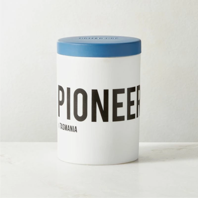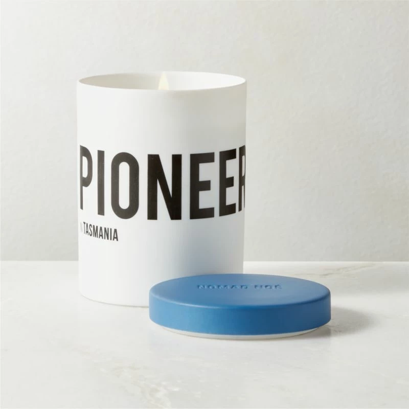 Nomad Noé fragrance oils are crafted in Grasse, France and inspired by journeys of unconventional historical figures. Hand-poured in small batches in the United States with a blend of vegetable waxes, each candle is presented within delicate matte porcelain to create a hypnotic glow when burning. Pioneer in Tasmania features notes of sea salt and coconut with hints of rose, incense and musk.