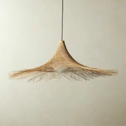 Coconut ribs sourced in the Philippines fan out in a handwoven chandelier. Larger in scale with a central glass globe that casts soft, warm light—an elevated way to introduce natural materials above the dining table. CB2 exclusive.