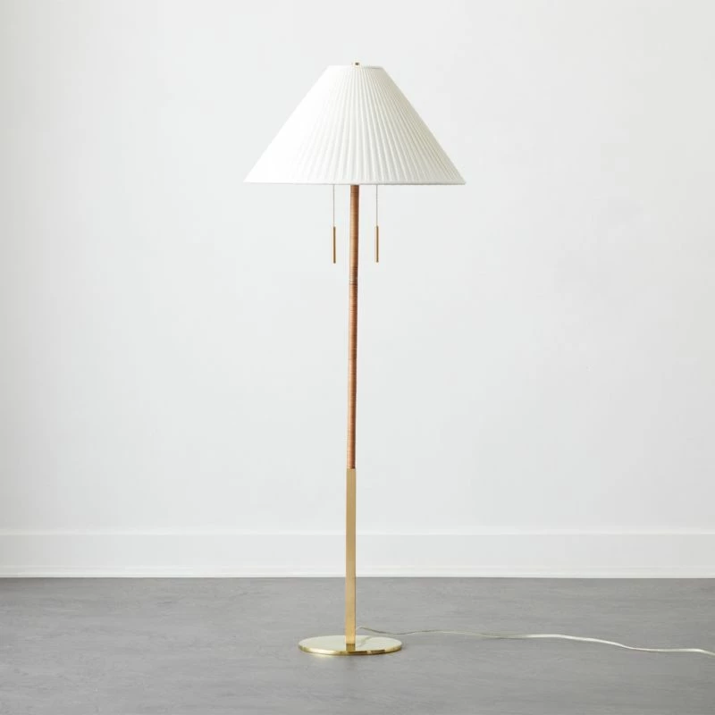 - Solid polished unlacquered brass base with natural cane wrap