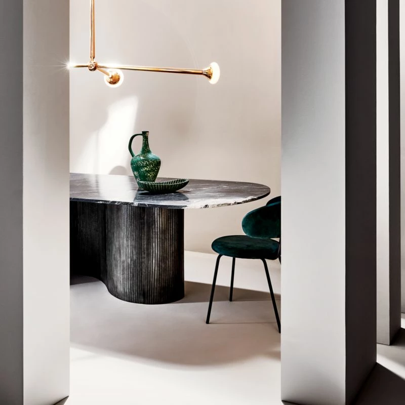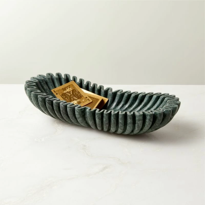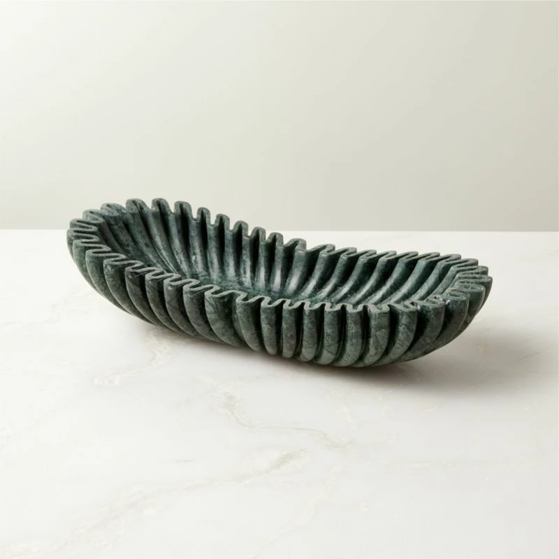 Reve Oval Fluted Green Marble Bowl 14″Wx6″Dx3″H
