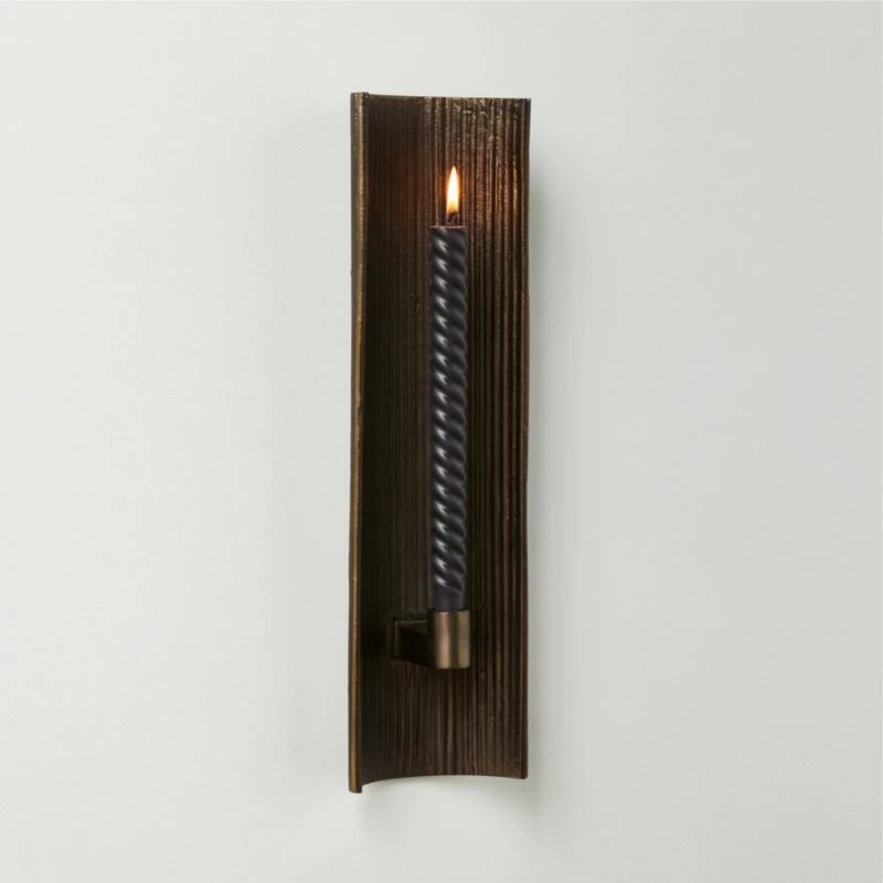 Ripples of cast aluminum offer rich texture as a background for a single flickering taper. Combined with a warm bronze finish, taper sconce captures an elevated modern look. CB2 exclusive.