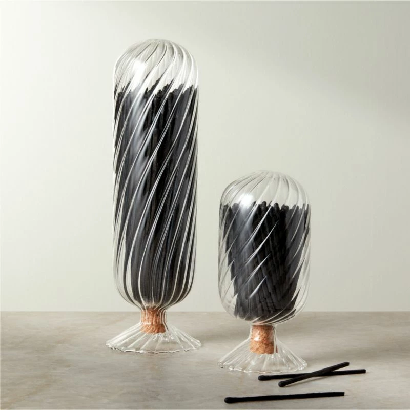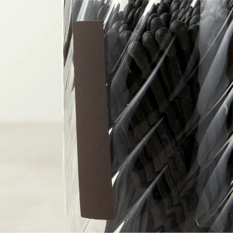 Crafted from handblown glass, small match cloche houses 120 black matches and a strike-on-bottle flint. Spiral texture on the inside adds visual interest. CB2 exclusive.