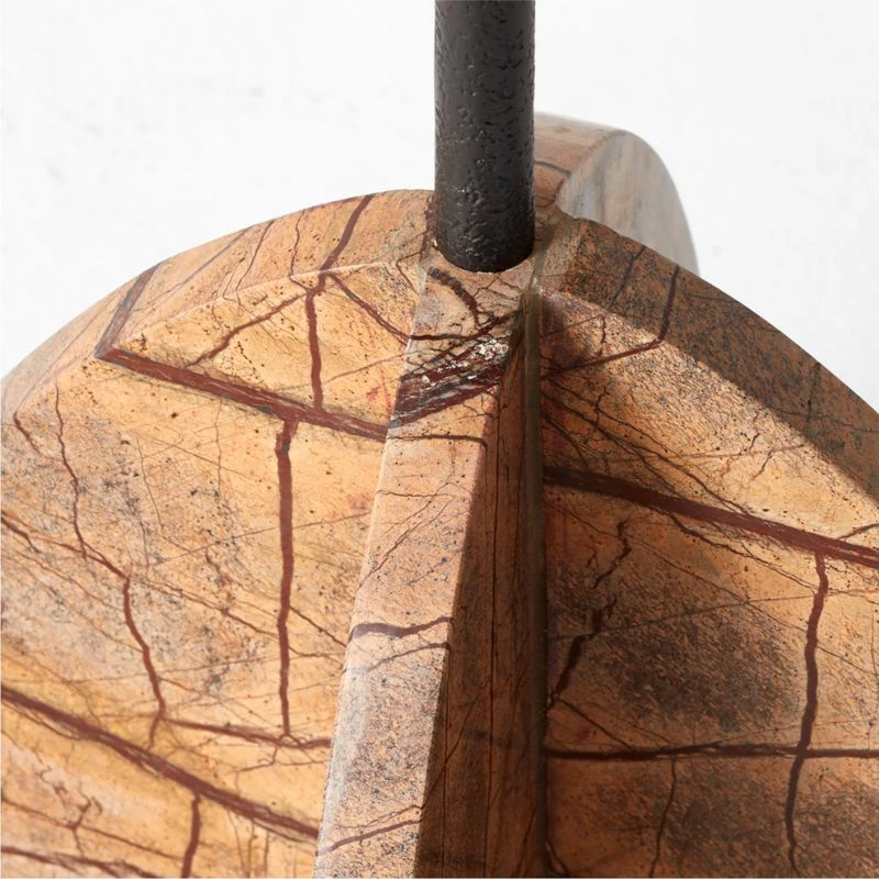 Mermelada Estudio mixes metal and marble to create this unexpected side table. Taking design elements from the French industrial and Cubist movements, cast aluminum top contrasts with a curved marble base. Quarried in India, polished Brown Forest marble is known for its striking orange and tonal grey veining, giving the piece a refined look. CB2 exclusive.