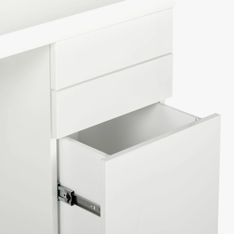 - Engineered wood desktop and shelves with hi-gloss white lacquer
