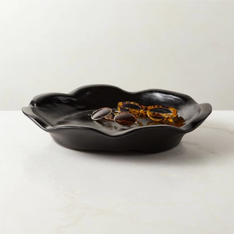 Crafted from Indonesian teak root, decorative bowl has scalloped edges and an unexpected twist: a high-gloss lacquer that highlights the beauty of the wood grain. Due to the natural properties of teak, each piece will be unique. CB2 exclusive.