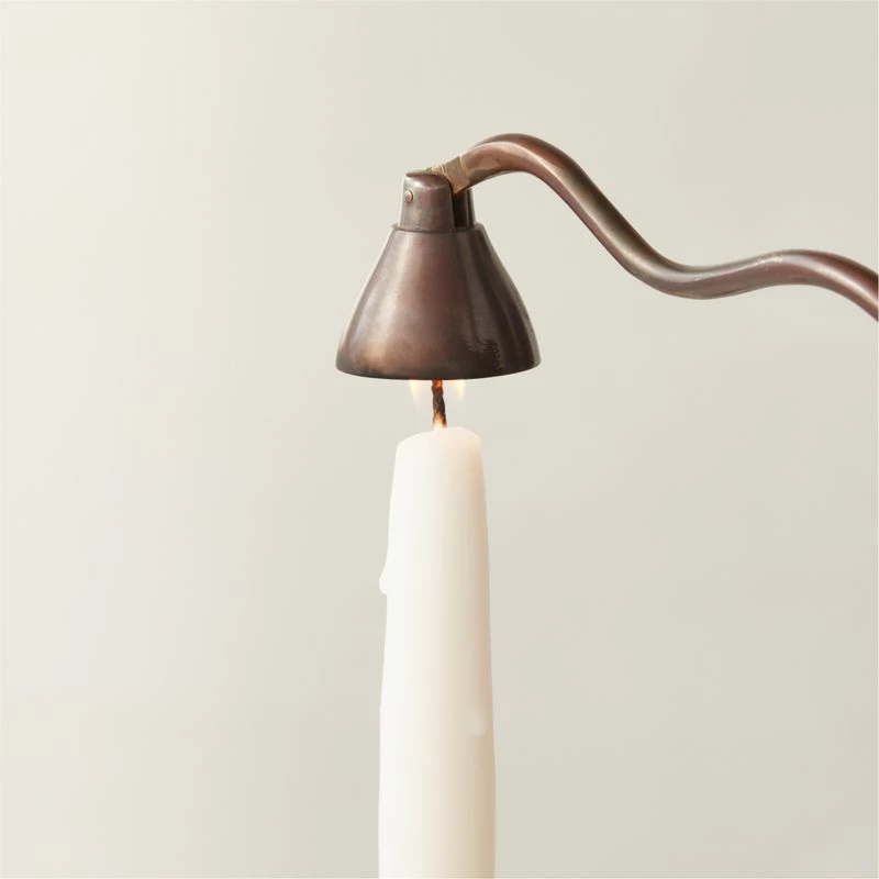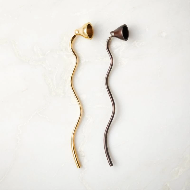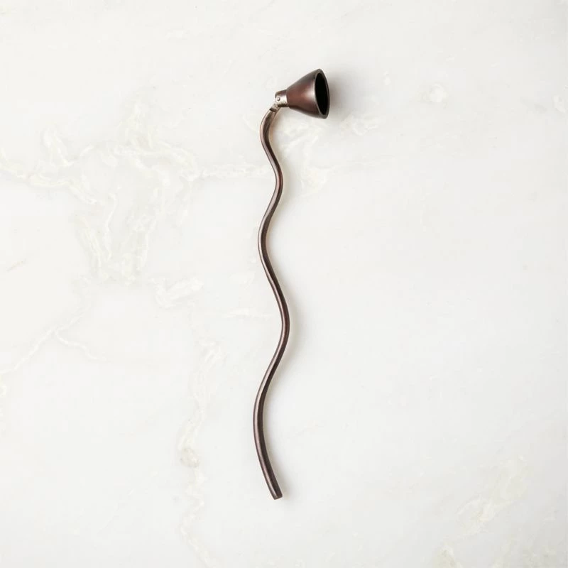 Dramatic in blackened brass, candle snuffer’s wavy handle has a postmodern feel. CB2 exclusive.